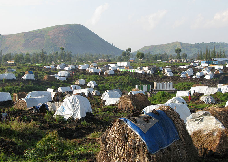 Arriviamo nella località del campo, situato lungo una trafficatissima arteria stradale, ma non troviamo anima viva. La gente del luogo, a cui chiediamo informazioni, ci racconta che il tutto è stato smantellato ancora l’anno scorso. Forse, finalmente, una notizia positiva; forse questi derelitti sono stati fatti rientrare nei loro villaggi… SMENTITA IMMADIATA! Tre ragazzi lungo la strada ci svelano che il campo profughi è stato solamente spostato in altro loco, non più visibile al passaggio del traffico veicolare. Per pochi franchi congolesi, salgono in auto e ci fanno strada.