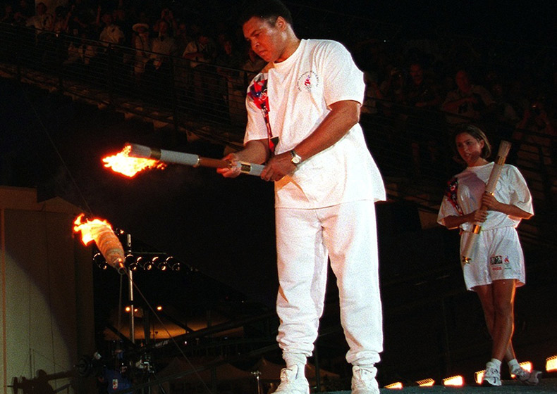 Gli ultimi anni della sua vita sono segnati dal terribile morbo di Parkinson, la sua immagine, da prima forte e vigorosa, ora debole e sofferente, ha commosso l'opinione pubblica di tutto il mondo. Alle Olimpiadi americane di Atlanta 1996, Muhammad Ali sorprese e toccò il cuore di tutti, accendendo la fiamma olimpica che inaugurava i giochi. Il grande atleta, dotato di una forza di volontà e di un carattere d'acciaio, non si fece moralmente sconfiggere dalla malattia che lo accompagnò per trent'anni e continuò a combattere le sue battaglie di pace, in difesa dei diritti civili, rimanendo sempre e comunque un simbolo per la popolazione di colore americana.