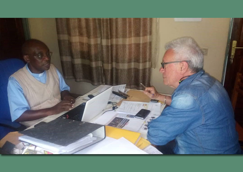 Alla Casa salesiana nulla è cambiato. Stesse camere polverose, stesso bagno senz’acqua e stessa elettricità zoppicante, rinforzata la sera da un generatore bolso e rumoroso. Il cuoco Justine ed il tuttofare Diamant ci abbracciano lungamente con sincero trasporto. I salesiani sono cambiati (in foto: gli amici salesiani); è arrivato Hervè giovane e aitante, in sostituzione di père Kisito, trasferito a Lumunbashi assieme a Jeremie, aspirante salesiano responsabile della scuola, a sua volta sostituito da Alphonse, un tirocinante che trascorrerà due anni a Bosconia prima di affrontare il diaconato. Comprendo subito che non tira una buona aria anche per il nostro Jean Marie. È giunta l’ora del trasferimento anche per lui ma l’aver ottenuto quel particolare finanziamento C.E.I. ha bloccato tutto. Lui è il responsabile amministrativo con facoltà di firma, per quanto riguarda il progetto AMANI. Questo gli permetterà di restare a Goma fino al totale compimento dell’opera e poi chissà quale sarà la sua destinazione! Il Congo è un Continente vastissimo e la sua eventuale lontananza comprometterebbe non poco i nostri eventuali progetti futuri. Attualmente è ancora Preside dell’Istituto “ITIG”, ma solo “pro tempore”, poiché il suo sostituto, proveniente da Lumunbaschi, tarda ad arrivare. Sono problemi che affronteremo a tempo debito, ora bisogna organizzare bene le varie fasi della costruzione finale della scuola, i pagamenti dei materiali e della manodopera, la raccolta delle fatture e le pezze giustificative.