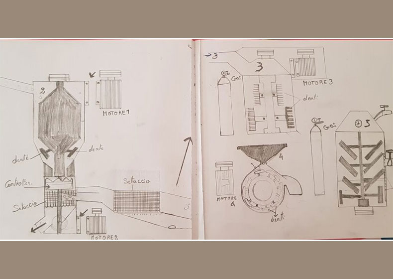 Andando ogni mattina in treno al lavoro da Padova a Camposampiero, Bourama vede dal finestrino tante macchine e comodità con cui gli Italiani risparmiano molte fatiche. In Mali, invece, si lavora soltanto con le mani per ottenere ogni cosa. La fatica più grande, nel suo villaggio, è spremere a mano quintali e quintali di karité, per ottenere il burro. Il karité è importantissimo in Africa. Se tu lo passi nel petto di un bambino malato, guarisce. Serve per tutto il Karité. Non c’è cosa che il karité non possa fare in Africa. Così, fra una stazione e l’altra, con in mano il suo inseparabile album, disegna una macchina che rompe il guscio delle noci di karité, setaccia i gherigli oleosi dividendoli dai gusci legnosi, li lascia essiccare (giacché umidi, dice, sono inservibili) e infine schiaccia i semi per ottenere il burro, una risorsa vitale che le donne e gli uomini maliani ottengono con tanto sacrificio.