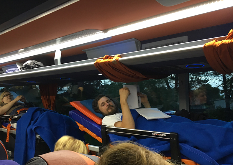 Il viaggio, durato dalle 20 della sera alle 13 del giorno successivo, si è svolto nella massima serenità, permettendo a coloro che ne avevano bisogno di riposare in comode brandine o a qualche altro di fare conoscenza con i presenti.