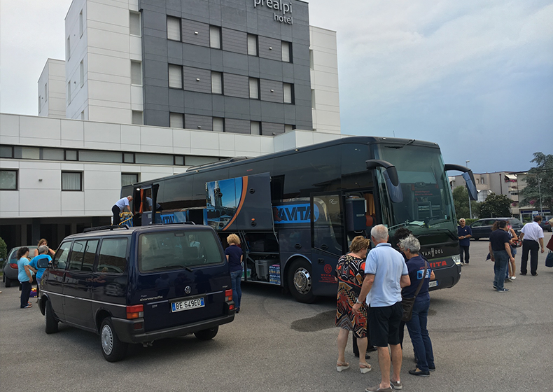 Tra emozione e curiosità, con fermento e accortezza, siamo guidati a prendere posto e a metterci a nostro agio dai diversi partecipanti volontari dell'Associazione, tra i quali alcune persone conosciute del nostro paese; in questo viaggio ha partecipato il Vescovo Corrado Pizziolo e alcuni sacerdoti della diocesi di Vittorio Veneto.