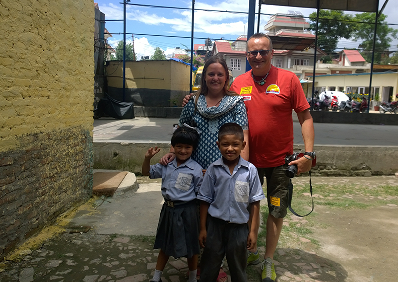 Giuliano Dal Cin insieme a Bec Ordish (responsabile di Mitrataa) e due fratelli nepalesi sponsorizzati negli studi grazie anche alla vendita del libro.