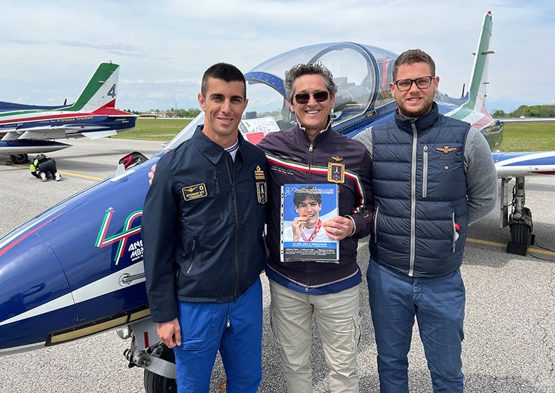 Non restava altro obiettivo, se non quello di avvicinare il comandante Tenente Colonnello Stefano Vit, il quale, dopo una presentazione e lo scambio di due parole con una bella foto ricordo, ci congeda con la promessa di un’intervista per il nostro giornale QualBuonVento, cosicché i nostri lettori possano conoscere alcuni segreti o aneddoti della Pattuglia Acrobatica più invidiata e più brava al mondo!