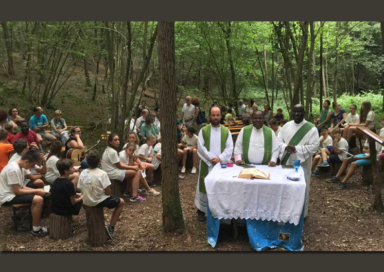 L’ingresso è composto da canne di bambù pendenti che al minimo tocco emettono un suono tanto naturale quanto misterioso. Le voci tacciono, i passi si fanno più leggeri. Fuscelli disposti con arte segnano il sentiero dentro un bosco tenuto con cura, e d’improvviso appaiono onde sospese a mezz’aria. Quella che in altro luogo viene definita “installazione” qui diventa presenza, “movimenti lenti, spiriti vaganti... il ritorno alla creazione” si legge in un cartello. E il silenzio è l’unico rumore che odi. Sulla sinistra un lupo costruito con elementi naturali a rappresentare il selvaggio che non possiamo controllare e a ricordare che esso, a differenza dell’uomo, vive in armonia con la natura. Ancora qualche passo verso gli ultimi raggi di sole sfuggiti alle fronde e finiti in fondo alla vallata. Rami, intrecciati a indicare unione, disegnano il portone d’ingresso e su, lungo il costone un crocefisso di fuscelli indica la vita, giù tronchi tagliati a pezzi fanno da arredo. Leggio e altare di legno povero riportano il pensiero a quel credo semplice del passato, quello dei capitelli votivi, degli alberi santi, e assestano uno scossone di positività a questa nostra fede avvolta in uno spesso velo di polvere. Si è concluso proprio venerdì 8 luglio, con la messa nella “cattedrale” del Bosco, il campo dei ragazzi delle medie a Casa Milaico di Nervesa: porte sempre aperte, volontari al lavoro e ragazzini grondanti di sudore per le corse tra valli e colli, dentro un’esperienza che mai avrebbero immaginato. Arrivati da ogni dove, sono 32, ma gli iscritti superano la sessantina ed è stato necessario fare due gruppi. A seguirli padre Osorio, religioso del Mozambico e superiore della comunità: dallo Zambesi al Piave, dai branchi di elefanti dentro la foresta alle lepri del nostro bosco. P. Osorio, un sorriso contagioso, come p. Piero, l’altro sacerdote della Casa. Con loro i ragazzini hanno trascorso alcuni giorni, osservato in silenzio il bosco e i suoi aliti, imparato ad apprezzare una vita senza sprechi, a pesare il cibo scartato, a risparmiare acqua ed energia. Un’impronta ecologica per un modo di vivere capace di dosare le risorse naturali del pianeta. Ragazzi che in breve sono entrati in sintonia con la natura, ma che si sono anche dedicati alla preghiera e all’aiuto reciproco.