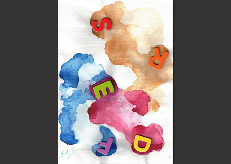 La dislessia, ovvero parole e numeri che si confondono, prende vita sulla tela e si armonizza con immagini e colori che portano in un mondo nuovo, diverso e affascinante.