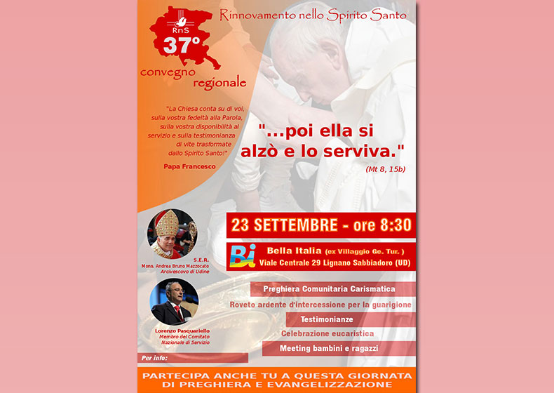 Domenica 23 settembre 2018 a Lignano Sabbiadoro si terrà l'annuale Convegno regionale dei gruppi del Rinnovamento nello Spirito.