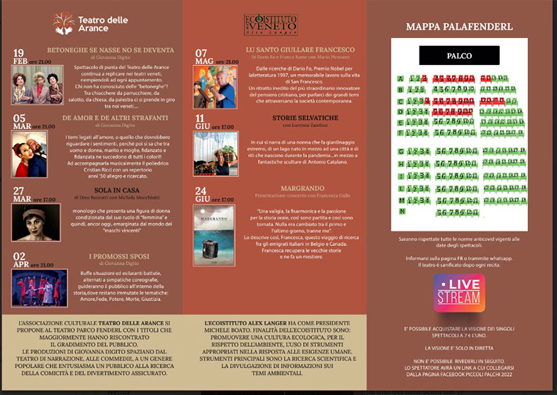 - Sabato 19 febbraio 2022 (ore 21.00): Betoneghe se nasse no se deventa, commedia di punta del Teatro delle Arance;