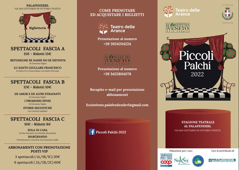 Riparte la stagione teatrale al Palafenderl di Vittorio Veneto, dove sabato 19 febbraio si terrà il primo appuntamento della rassegna “Piccoli Palchi”, programma di spettacoli teatrali nato dalla collaborazione tra l’Associazione Culturale “Teatro delle Arance” e l’Ecoistituto del Veneto “Alex Langer”, realizzato grazie al sostegno di Banca Prealpi SanBiagio, l’istituto di credito cooperativo con sede a Tarzo (TV), nel cuore delle Prealpi Trevigiane, parte del Gruppo Cassa Centrale Banca e della Coop.