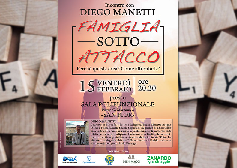 Ne parleremo con il prof. Diego Manetti, seguendo le indicazioni di papa Francesco: «La famiglia oggi è disprezzata, è maltrattata, e quello che ci è chiesto è di riconoscere quanto è bello, vero e buono formare una famiglia, essere famiglia oggi; quanto è indispensabile questo per la vita del mondo, per il futuro dell’umanità; ci viene chiesto di mettere in evidenza il luminoso piano di Dio sulla famiglia e aiutare i coniugi a viverlo con gioia nella loro esistenza, apprezzando sia i momenti di gioia sia quelli di dolore e di debolezza».