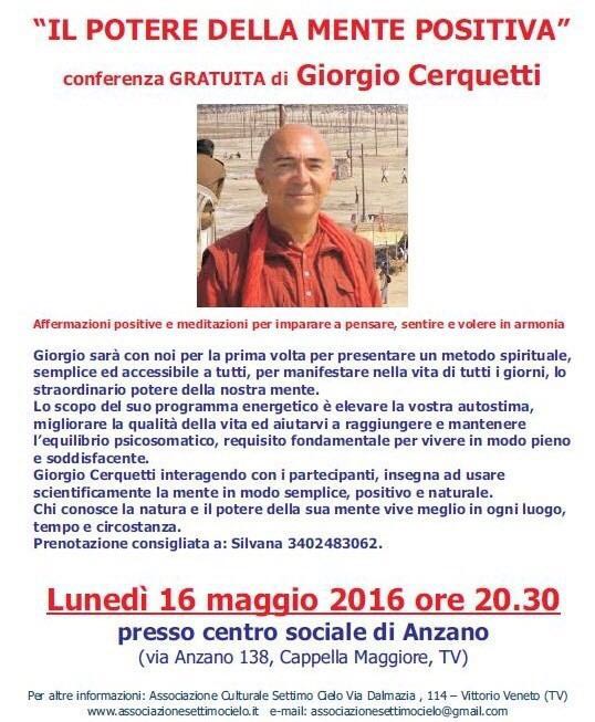 "Il potere della mente positiva". Conferenza con Giorgio Cerquetti