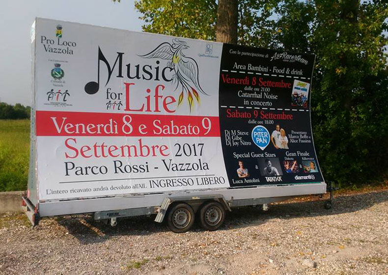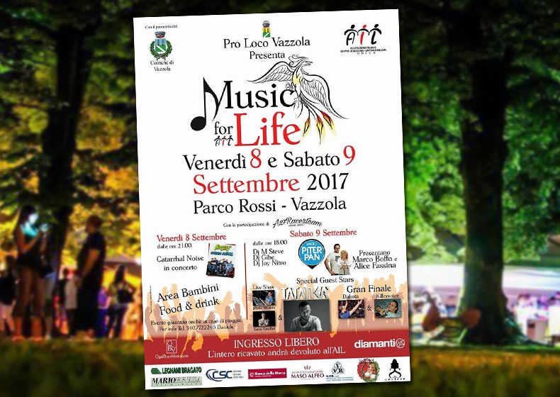 Guarito dal Linfoma di Hodgkin, Daniele Salatin, trentaquatrenne di Vazzola, si è reso conto che per poter garantire le cure necessarie alle persone colpite da questa malattia c’è bisogno di soldi. Essendo un gran appassionato di musica, ha deciso di chiamare artisti locali e dj che hanno fatto la storia delle discoteche venete, insieme a amici e associazioni, per festeggiare la sua guarigione e, al tempo stesso, aiutare chi deve affrontare la sua stessa battaglia. È nato così il primo evento MUSIC FOR LIFE AIL (2015), realizzato con l’aiuto della Pro Loco presso il Parco Rossi di Vazzola. La serata/evento iniziale ha riscosso subito grande successo: un migliaio di persone coinvolte e 1.600 euro devoluti al Reparto Ematologia dell’Ospedale di Treviso, dove Daniele è stato curato con il supporto dell’A.I.L.