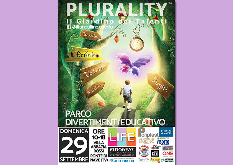 Si tratta di un progetto molto innovativo: un parco divertimenti per scoprire le proprie potenzialità. PLURALITY, il giardino dei talenti vuole essere un concept in cui ogni persona, in particolare il bambino, possa sentirsi piena di bellezza e di talenti. Lancia il messaggio di amare le proprie unicità, attraverso la sperimentazione in forma ludica. È un evento unico nel panorama educativo attuale.