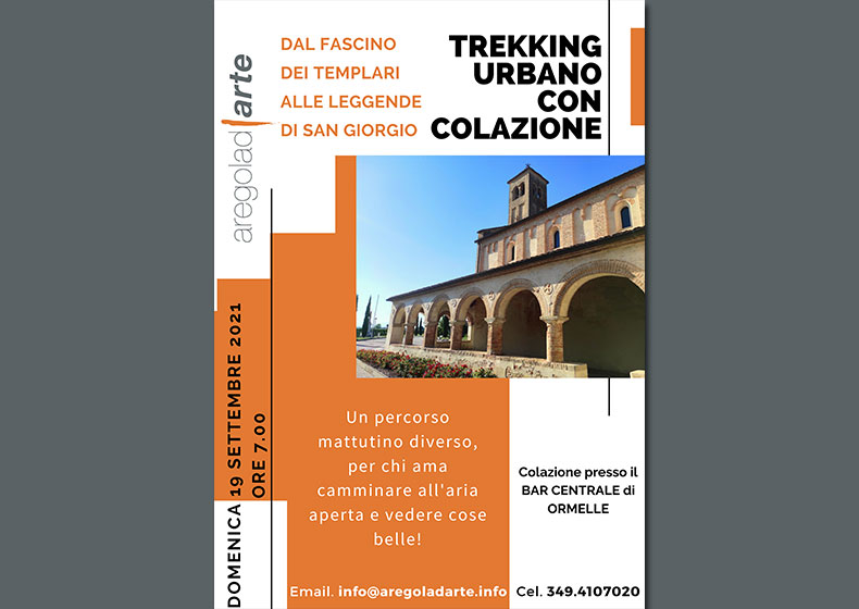 Alla luce del primo mattino, a passo veloce, ci si potrà immergere nella vista della campagna e delle sue acque, ammirare antichi affreschi, riscoprire i percorsi dei pellegrini ed "incontrare" le figure dei santi invocati per secoli dalle genti del luogo. Come perle preziose incastonate nel verde della campagna, si visiteranno due piccole chiese antiche, quasi sconosciute ma molto ricche di fascino e storia che attraggono i visitatori curiosi ed appassionati: la chiesa di San Giovanni Battista di Tempio di Ormelle rievoca la presenza dei Cavalieri Templari in queste terre e la chiesa di San Giorgio di San Polo di Piave ricorda la battaglia di questo santo contro il drago.Al termine della visita si farà colazione in compagnia.