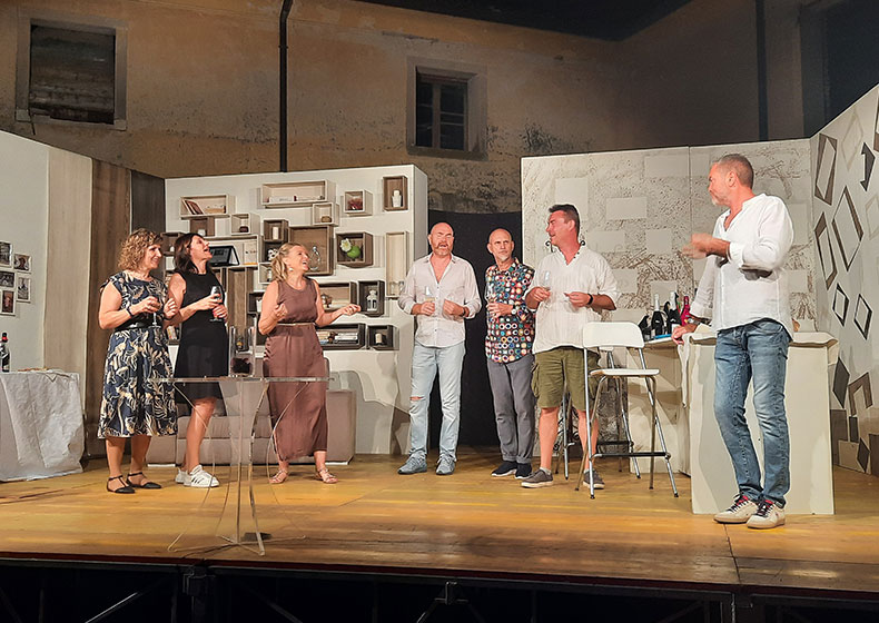 Metti una sera a teatro nella magnifica “location” dei giardini dell’agriturismo “Fiori & Vigne” a Farra di Soligo: in una bella sera d’estate, in un colpo solo, si danno voci e volti alla cultura, si fa il tutto esaurito, si registra un autentico successo di spettatori e di critica e si destina il ricavato a finalità di beneficenza, in particolare a persone e famiglie con disabilità. Tutto è riuscito perfettamente alla Pro Loco di Farra di Soligo, capitanata dal presidente Roberto Tormena, che sabato sera 30 luglio ha organizzato la rappresentazione dell’opera dialettale brillante “Solo la verità in maschera”. Protagonista sul palcoscenico la compagnia teatrale “La Contrada” – che opera dall’ormai lontano 1991, con varie produzioni e premi al suo attivo – con la regia di Vittorio Casagrande e con il patrocinio del comune di Farra di Soligo. Liberamente tratta e “bistrattata” dal film “Perfetti sconosciuti” di Paolo Genovese, la commedia ha visto protagonisti sulla scena, con il loro nome reale di battesimo, sette attori di talento di casa nel Quartier del Piave, che hanno recitato brillantemente davanti a un caloroso pubblico, raccogliendo applausi a scena aperta in più occasioni durante lo spettacolo, diventati alla fine un lunghissimo e sorridente battimani: Vittorio Casagrande, Fanny Granzotto, Raffaela Cavasin, Nicola Trinca, Nevio Micheletto, Mery Manzato e Renato D’Arsiè, accompagnati da un valente staff di voci fuori campo e tecnici formato da Sabrina De Conto, Paolo Salomon, Alberto Casagrande, Siri, Marco Casagrande, Rachele Reggia, Andrea Gava, Luigi “Birol” Favero, Romina Micheletto, Luigi Trangoni e Francesca Balistri. Prendendo spunto dal lungometraggio di Genovese, di grande successo a livello internazionale, il soggetto teatrale mette al centro dell’unica grande scena di una cena tra amici la famosa scatola nera, quel cellulare che alla fine custodisce tutti i segreti più nascosti e sorprendenti delle vite di ciascuno, in una girandola di battute esilaranti, telefonate a viva voce inattese e sgradite, amenità, equivoci, prese in giro e rivelazioni scottanti. Tutti veramente bravi i sette attori principali in azione, capaci di esprimere talento, passione e spirito di squadra con gioia e divertimento, molto apprezzati dal folto pubblico che gremiva l’area destinata. Davvero grande soddisfazione per la Pro Loco farrese, che già aveva ospitato negli ambienti di “Fiori &Vigne” la recente rassegna di vini nell’ambito della Primavera del Prosecco 2022: se ne è fatto interprete lo stesso presidente Tormena, mettendo in luce in particolare l’ottima collaborazione dei volontari del sodalizio e l’ospitalità offerta dai titolari dell’agriturismo. Sinceri complimenti e parole di gratitudine per la bella iniziativa sono giunti anche dal vice sindaco di Farra di Soligo, Michele Andreola, e dal coordinatore di VIP, Marco Zabotti, che hanno evidenziato la bellezza del teatro dialettale, il significato della sinergia pubblico-privato e il valore della ripresa degli spettacoli de “La Contrada” dopo la difficile pausa per l’emergenza sanitaria. Sentimenti di vivissimo compiacimento per la bravura degli interpreti, per l’opera della Pro Loco e per le finalità benefiche della serata, ottimamente presentata da Elisa Nadai, sono stati espressi in conclusione dalla titolare dell’agriturismo farrese, Cecilia Marcon, prima dei saluti tra gli applausi, le foto con gli attori e il simpatico brindisi finale, nella speranza di una possibile replica ancora in tempo d’estate.