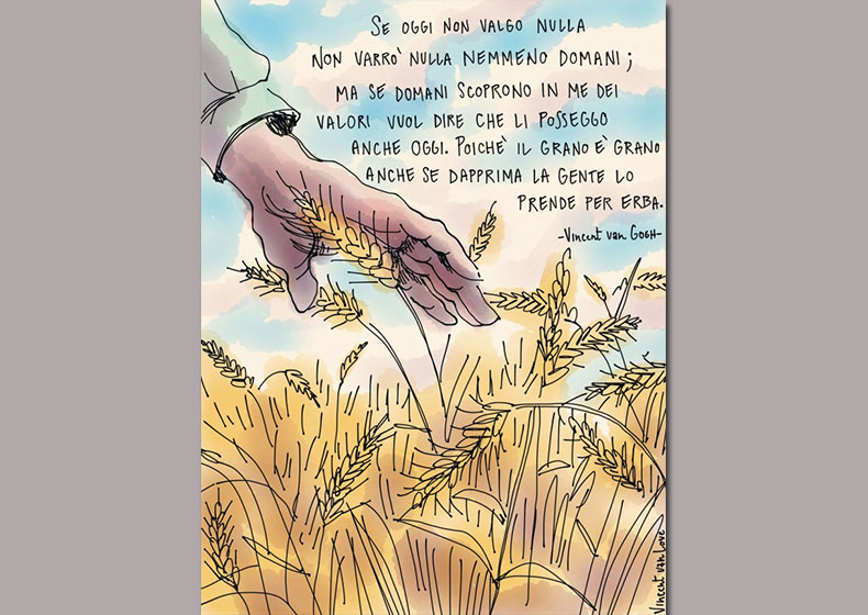 Grande merito dell’autore, oltre alle illustrazioni definite e poeticamente sfumate, è di aver ricostruito brevemente la vita di Vincent prima dei fatti più noti e, purtroppo, pregiudizievoli: una storia sommaria ma per nulla scontata, poiché anch’essa incentrata su episodi emotivamente provanti e personalmente significanti per la vita e l’animo del pittore, educato fin dalla tenera età all’austerità ma votato alla libertà, alla celebrazione della natura e alla compassione dei suoi pari. Questo è quello che le sue tele e i suoi bozzetti raccontano.