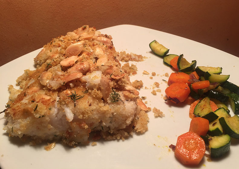Merluzzo in crosta di mandorle