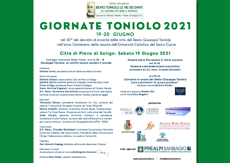 Giornate Toniolo 2021, ecco l’evento nazionale