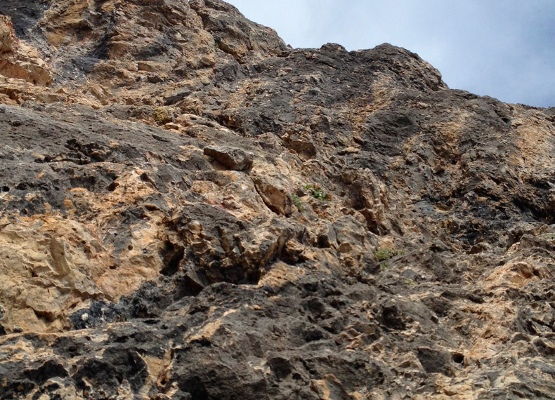 Il secondo tiro, considerato quello chiave, invece si fa vedere subito strapiombante, due tetti di 6a, fortunatamente ben protetti e poi prosegue con una bella placca verticale.
