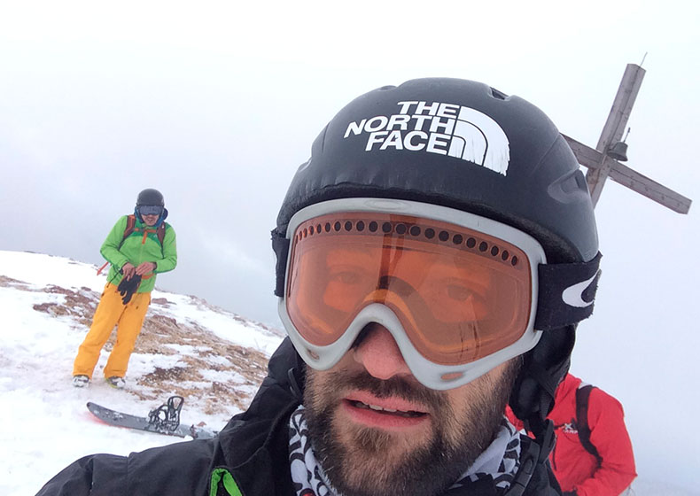 Mangiamo qualcosa e poi, tolte le pelli, scendiamo tenendoci sulla destra così da poter fare anche la cima adiacente; con la seconda pellata, in breve, risaliamo anche questa per un totale di 1100mt di dislivello.
