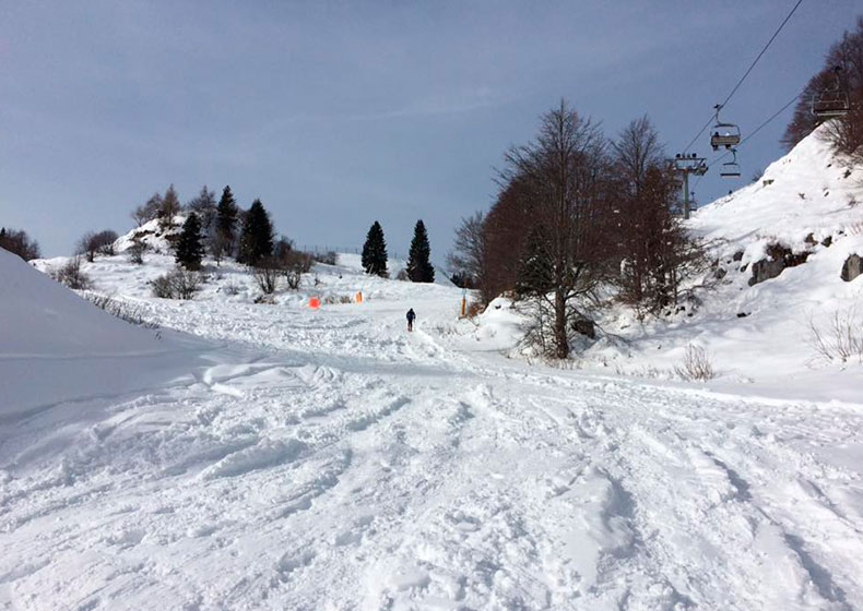 Come arriviamo su quest'ultima parte, iniziano i dubbi: il manto è bello ma si parla di una velata; in alcuni punti ci sono solo 20cm di neve e sotto erba o rocce, tant'è che non ci c'è salito nessuno...