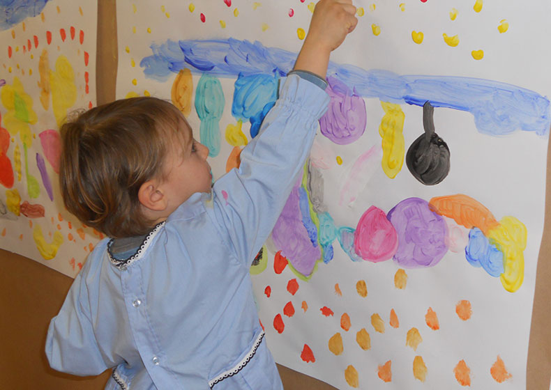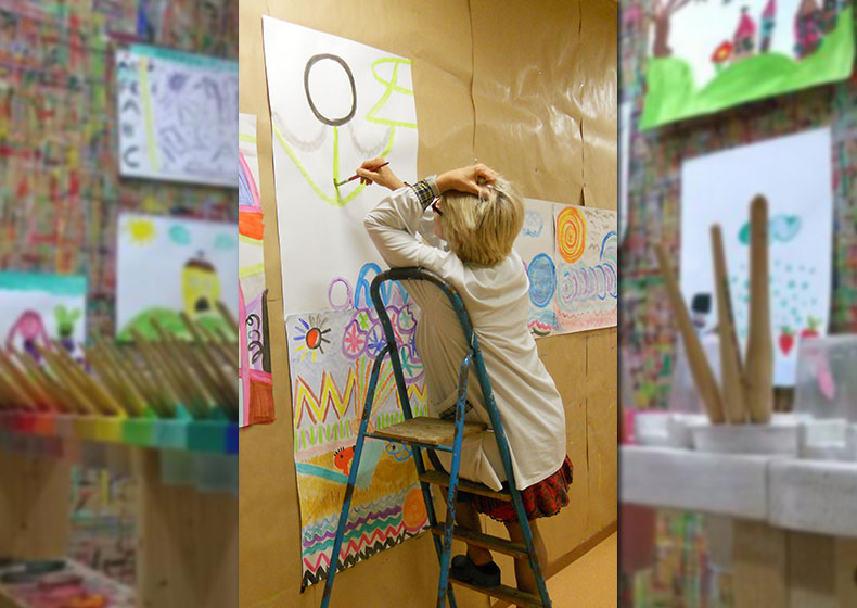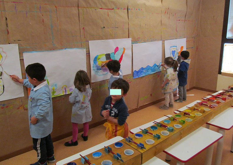 Con le pareti colorate dalle tracce di chi vi gioca e la tavolozza dei colori che sta al centro della stanza, il Closlieu è il luogo che favorisce la calma delle azioni e dei ritmi, non ci si deve preoccupare di “dare” un risultato o di rispettare dei canoni grafici: a ciascuno è permesso di esprimersi naturalmente, senza confronto e senza giudizio, senza la pena di giustificare. Si può giocare spontaneamente, si può seguire la traccia naturale che emerge in modo personale, sostenuti da semplici regole di buona relazione.