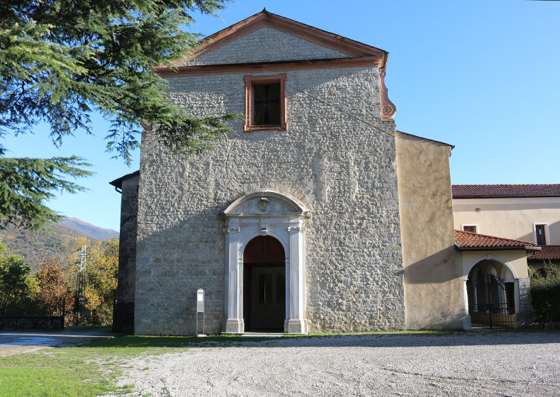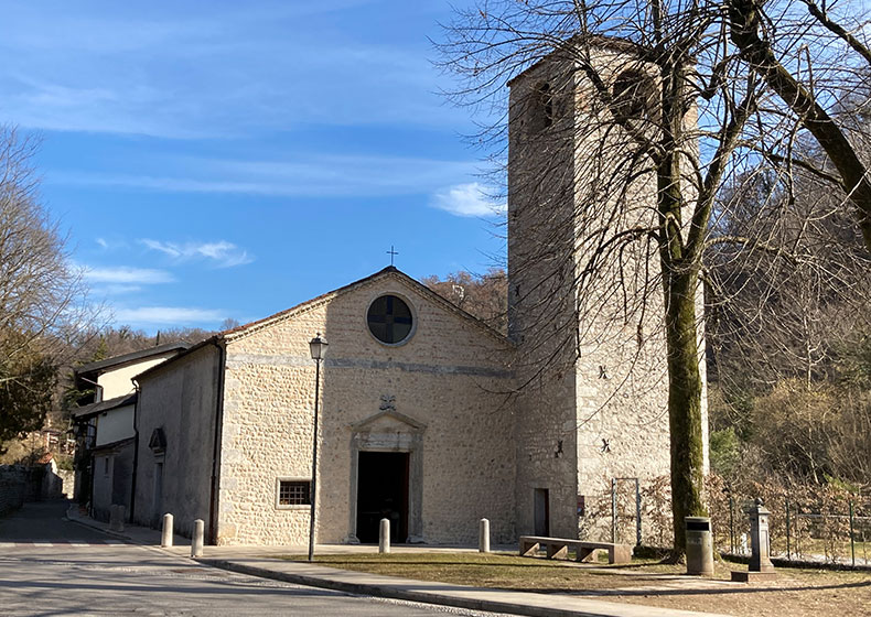 Ritornati all’aria aperta, vale la pena di fare due passi anche sul retro della chiesa per godere del panorama che si apre sulle acque vorticose del Gorgazzo in basso e i rilievi della pedemontana che proteggono il colle e il borgo dalle correnti provenienti da ovest.