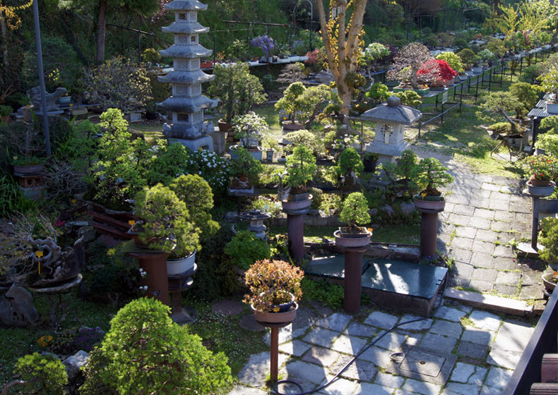 I bonsai non sono semplicemente esposti in fila sui bancali, o appoggiati su dei tronchi, o negli spazi faticosamente ricavati sulla collina, ma inglobati nel verde quasi fossero un tutt’uno, divengono così un luogo di riflessione, di meditazione, di ricreazione, di piacere.