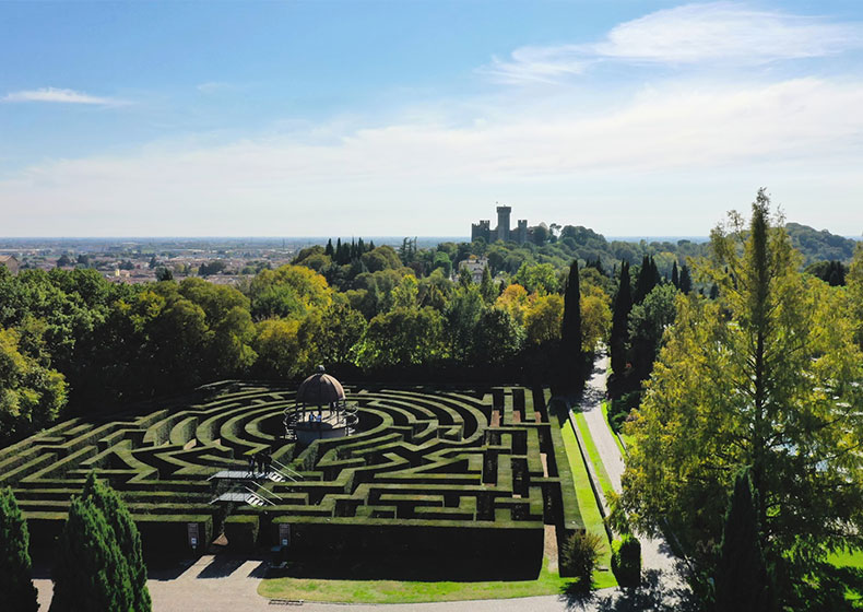 600.000 metri quadrati di estensione tutti da scoprire, a piedi, in bicicletta (propria o a noleggio - servizio renting disponbile all'ingresso), in golf-cart elettrico con guida GPS, a bordo dello shuttle elettrico accompagnati da una guida o sul trenino panoramico. Molteplici i punti di interesse presso i quali soffermarsi: il Labirinto, la Fattoria, la Grotta Votiva, l’Eremo, il Castelletto, la Pietra della Giovinezza…