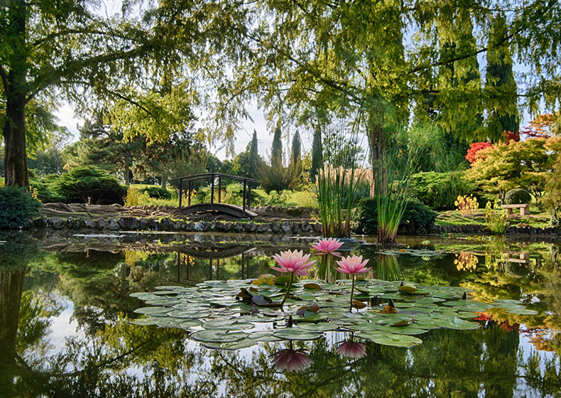 In estate il Parco Giardino Sigurtà (Vialeggio sul Mincio – VR) affascina i visitatori con le sue coloratissime fioriture: 30.000 rose, dalie, fiori originari del Messico dalle innumerevoli forme, e poi gli appariscenti emerocallidi, simili ai gigli, l’esotica canna indica, e i girasoli in otto nuove varietà, tra cui il Kong, esemplare gigante che raggiunge un’altezza di 4,5 metri. Stupiscono i Giardini Acquatici, dove protagonisti dell’estate sono le ninfee rustiche e tropicali, i papiri, i giacinti d’acqua e i delicatissimi fior di loto dalle foglie impermeabili.