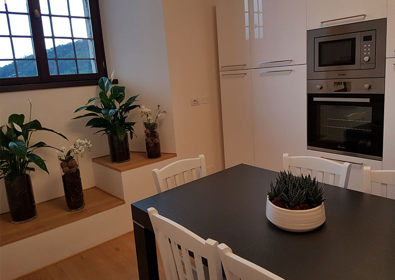 Sono state realizzate nove camere dotate di servizi completi e accessibili, su una struttura complessiva di 450 metri quadrati che permette di ospitare una ventina di persone, con locali cucina e soggiorno destinati alle attività comuni. Il sapiente restauro dell’antico, con elementi moderni innovativi armonicamente inseriti nell’edificato storico, ha consentito salvaguardia e valorizzazione degli spazi originari riservati un tempo alla vita personale dei monaci. Il recupero degli intonaci originali e delle superfici affrescate ha messo in luce finiture del XV e XVI secolo.