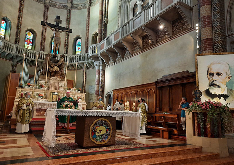A seguire, nel Duomo di Pieve di Soligo, la processione alla tomba del Toniolo e la recita della preghiera di canonizzazione hanno concluso la solenne concelebrazione eucaristica presieduta dal Vescovo Giuliodori. A suggello della prima Giornata Toniolo 2021, l’applauditissimo concerto del Coro e Orchestra In Musica Gaudium diretto dal maestro Battista Pradal, con parole speciali di elogio espresse al termine da Marco Zabotti e dallo stesso Vescovo assistente dell’Università Cattolica.