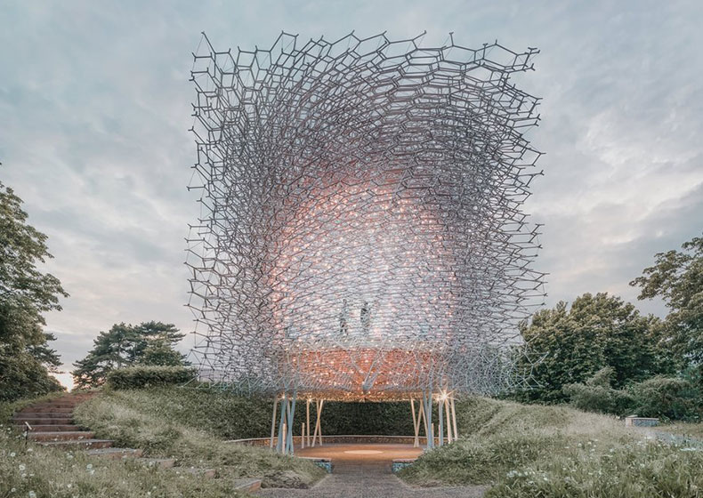Il libro si rivolge a un pubblico vario, è per tutti! Ci sono cenni storici sulle api, dagli egizi ai romani. Ci sono i vari stadi della vita dell’insetto, della regina, dei fuchi. E molte altre pillole interessanti: poesie, ricette con il miele in abbinamento ai formaggi, descrizioni delle piante che aiutano le api, informazioni sulle proprietà del miele, trucchi di cosmetica naturale utilizzando il miele e gli altri prodotti dell’alveare, etc. etc. L’obiettivo è sensibilizzare la comunità. Costa molto poco proprio perché voglio raggiungere almeno 1.000.000 di persone. Ogni italiano se lo può permettere. Voglio diffondere cultura consapevole. Ho anche in programma la traduzione in inglese perché vorrei spedire il libro a Londra all’architetto Wolfgang Buttressche, che ha disegnato il padiglione della Gran Bretagna a Expo Milano 2015 e che fa anche musica sulla base delle “note” dell’alveare. . Permettetemi alcune note sul padiglione. Punto focale della visita era l’ingresso (al piano superiore) al centro dell’alveare: entrando si era circondati da impulsi e brusii, insieme a 1000 lucine LED collegate a vere api. Il grande alveare era, infatti, collegato con un vero alveare nel Regno Unito monitorato dalla Nottingham Trent University: di notte, il movimento delle api veniva utilizzato per illuminare il padiglione. Il risultato era un fantastico gioco di luci che si accendevano e si spegnevano a seconda della quantità di moto registrata a Nottingham.